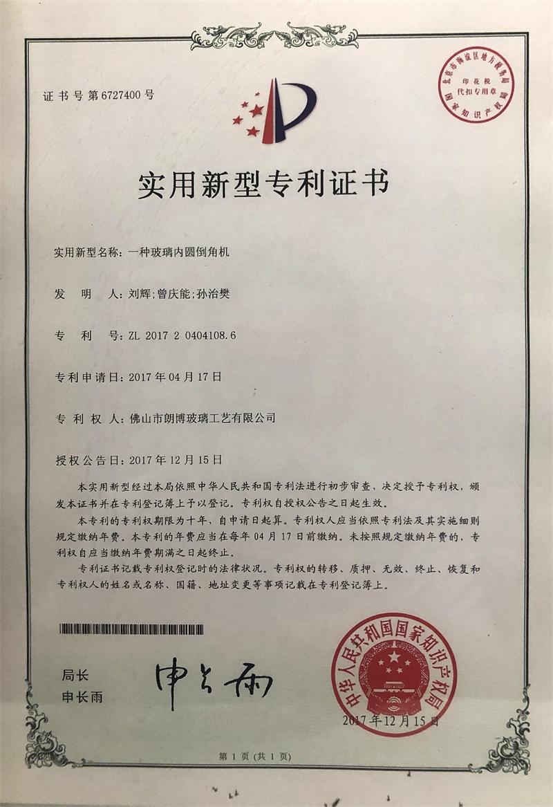 實(shí)用新型專利證書